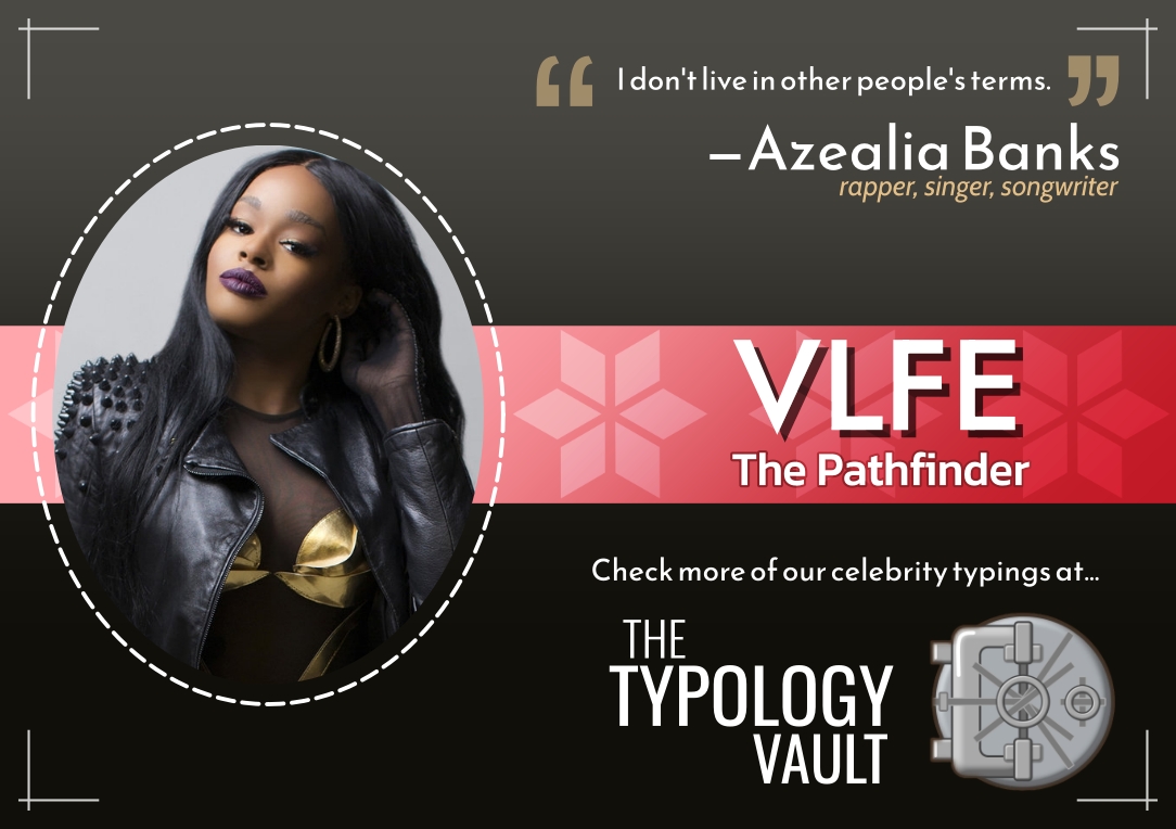 VLFE is the Attitudinal Psyche type that seems the most interested in creating a path for themselves through raw determination that is informed by their openness to new ideas and information. The VLFE appears to be protecting their right to carry out whatever decision they have made for themselves by careful consideration of the physical consequences that may arise. They may come off as leaderlike, movement oriented, expertise driven, blunt, talkative, commanding, self-assured, empire-building, authoritative, or scientific given that their interests move in that direction. The VLFE seems to want control over their identity through taking whatever destiny or outcome they believe is theirs while sharing the details of their experience with others.